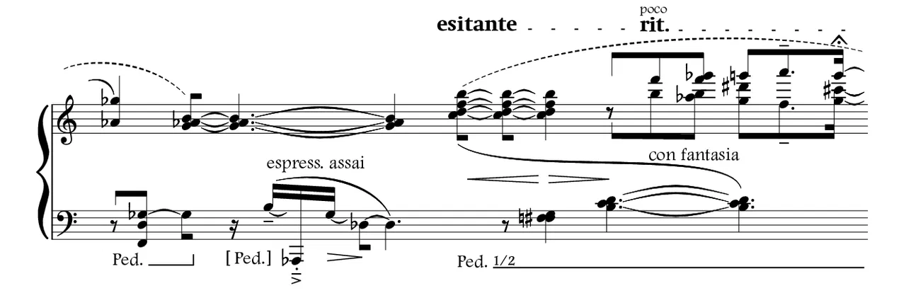 - Op. 1 for solo piano was composed in a period of vociferous musical study and apprenticeship. Berio’s Brin, Messiaen’s Catalogue d’Oiseaux, Schoenberg’s Op.11 and Op.19, as well as Takemitsu’s Uninterrupted Rests served as compositional directions, thus vaguely inhabiting the surface of the music. Post factum, a similarity with Takemitsu’s three pieces can be discerned: The limited technical palette at my disposal and the impossibility of an effortlessly exteriorized inner expression resulted in music of a melancholic autobiographical dimension.