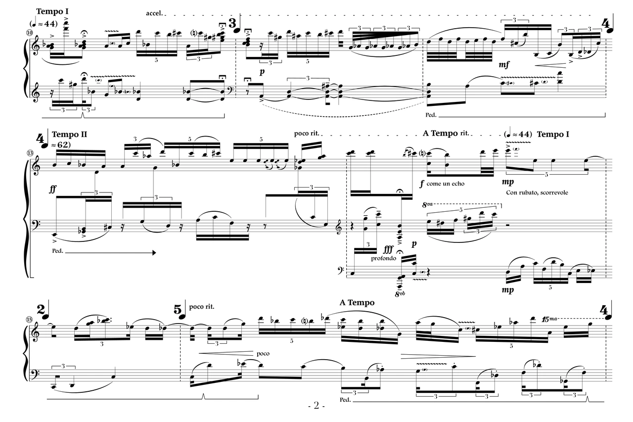 The final movement surges with energy, beginning in uncertainty and gathering momentum into rapid, repeating figures. Wave-like motifs return, propelling the music toward climactic clusters of sound that reverberate with explosive force. As the piece closes, the repetitions suggest an endless cycle, where endings and beginnings flow seamlessly into one another.